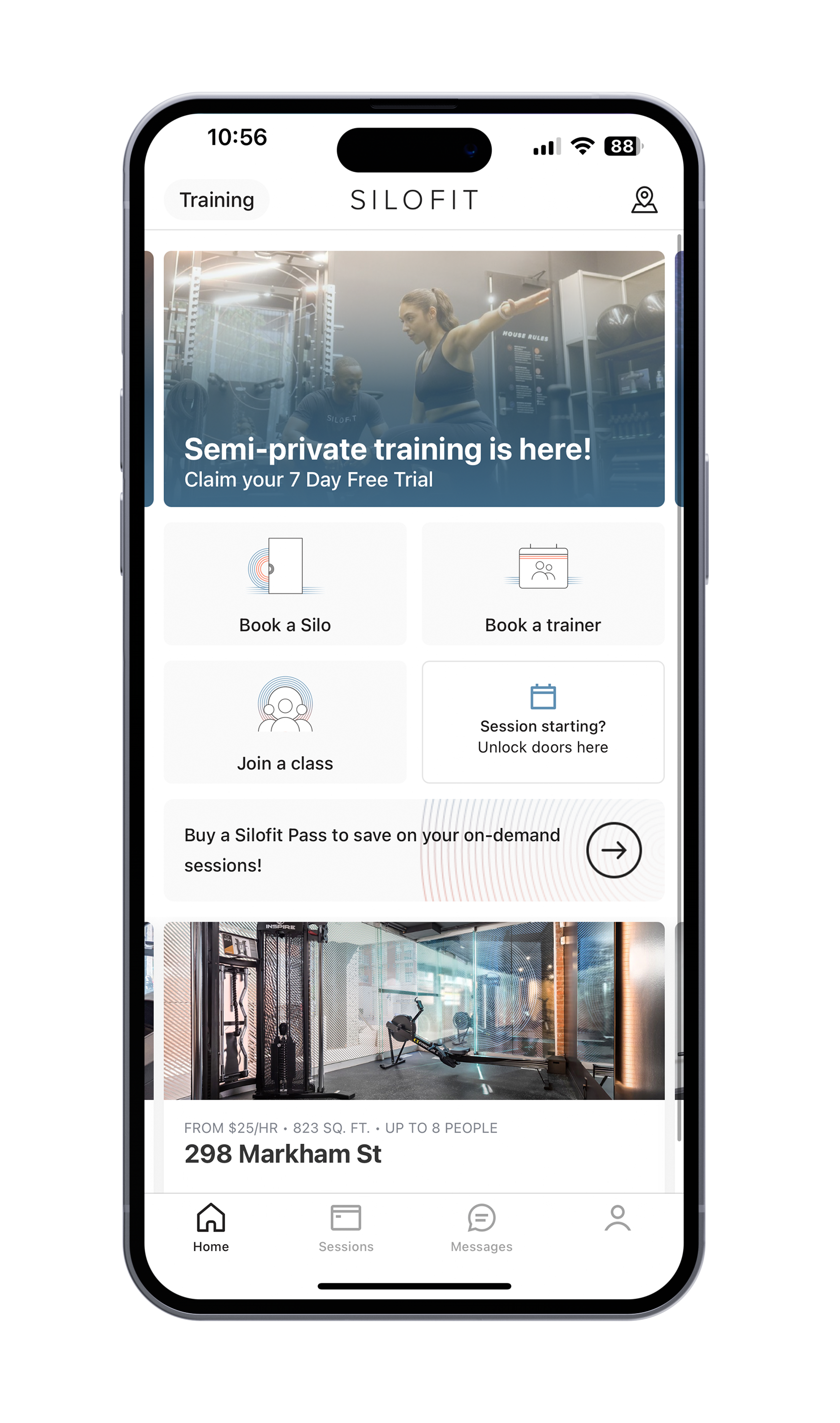 Rent by the hour, with no hidden fees. Download the Silofit app to get your first session for free.